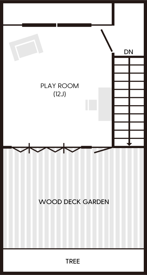 | 面 積 | 1F Garage / Car parking 41.65㎡ Entrance 11.535㎡ 2F Kitchen / Living room 53㎡ 3F Bedroom Bathroom 53㎡ 4F Playroom 25.21㎡ |